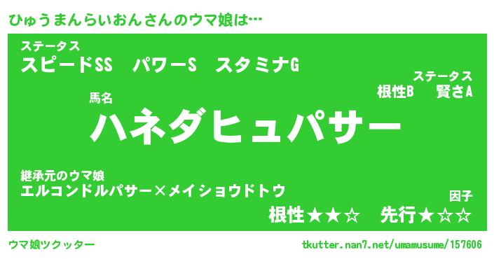 | ポケモン風あだ名 | 『ヒュチュウ』『ヒュウダネ』 |