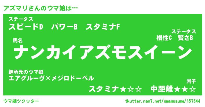 | 意味不明あだ名 | 『ペロリンアズマリ』『永久保存アズマリ』 |