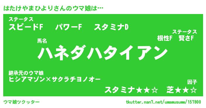 | ファンタジー風あだ名 | 『ハタフェル』『ファントムハタス』 |