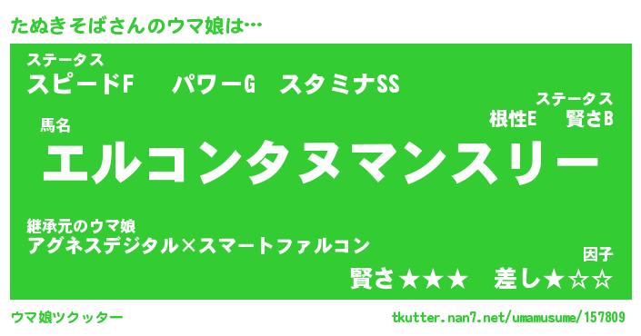 | ファンタジー風あだ名 | 『タヌフェル』『エターナルタヌキソバー』 |