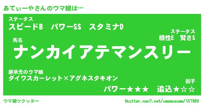 | 伝説のあだ名 | 『不死鳥のスナイパーあてぃーや』 |
