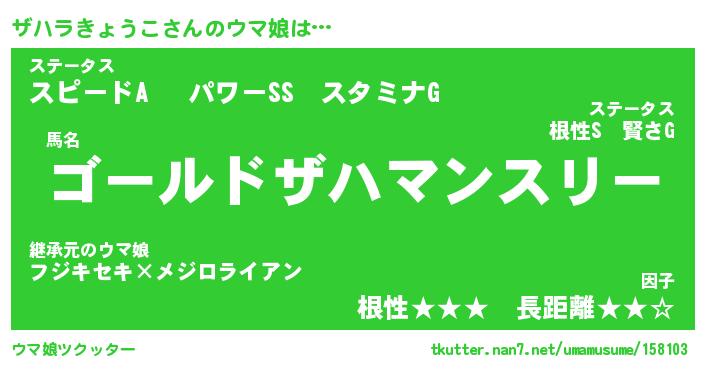 | 伝説のあだ名 | 『封印されし傭兵ザハラきょうこ』 |
