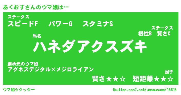 | 意味不明あだ名 | 『ペロリンあくおす』『永久保存あくおす』 |