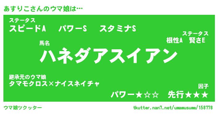 | 欧米人風あだ名 | 『マイケルあすりこ』『ウサインあすりこ』 |