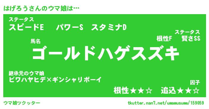 | ファンタジー風あだ名 | 『ハゲフェル』『エターナルハゲロウー』 |