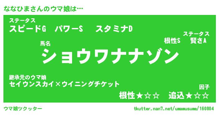 | 欧米人風あだ名 | 『マイケルななひま』『ウサインななひま』 |
