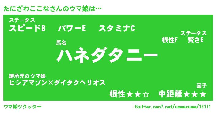 | ポケモン風あだ名 | 『タニチュウ』『タニザダネ』 |
