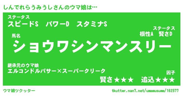 | 胡散臭い通販商品みたいなあだ名 | 『必ず成功するブレスレット…その名も「しんでれらうみうし」』 |