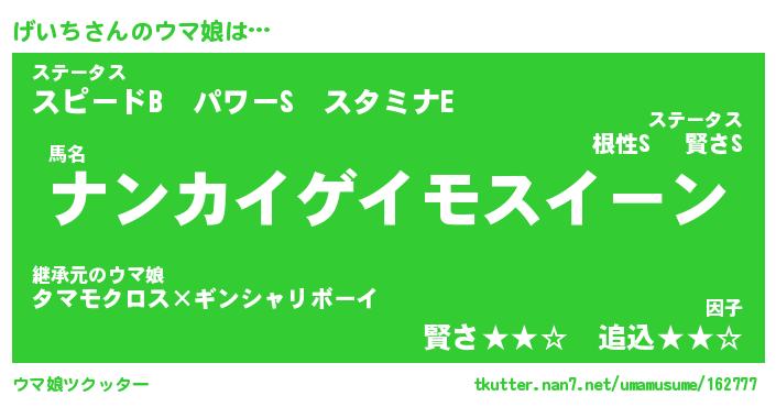 | ポケモン風あだ名 | 『ゲイチュウ』『ゲイチダネ』 |