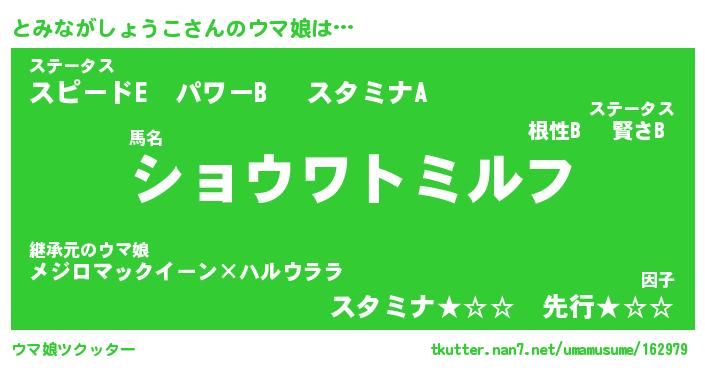 | ヒーロー風カッコイイあだ名 | 『スーパートミナガショウコ』 |