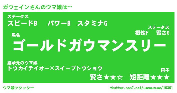 | 恥ずかしいあだ名 | 『プリティーガウェイン』『ガウっちょ』 |