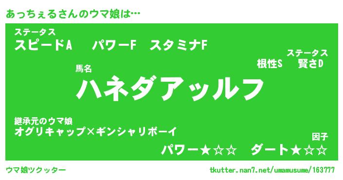 | ファンタジー風あだ名 | 『アッフェル』『エターナルアッチェルー』 |