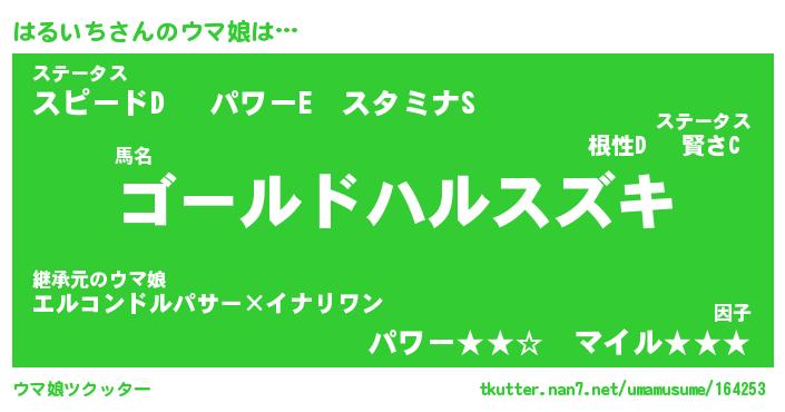 | ファンタジー風あだ名 | 『ハルフェル』『エターナルハルイチー』 |