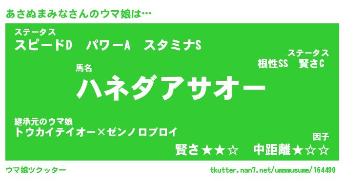 | ポケモン風あだ名 | 『アサチュウ』『アサヌダネ』 |