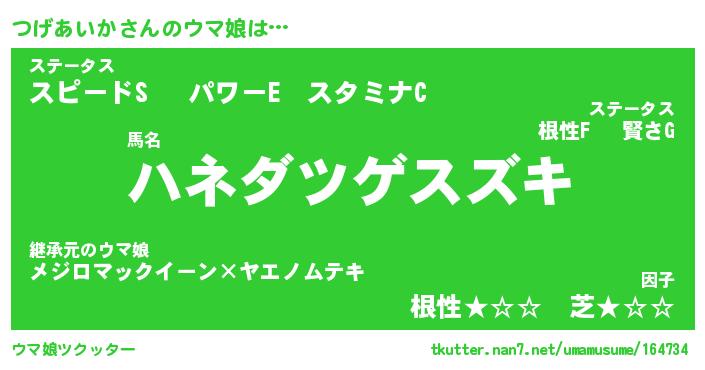| ヒーロー風カッコイイあだ名 | 『スーパーツゲアイカ』『黄金騎士ツゲ』 |