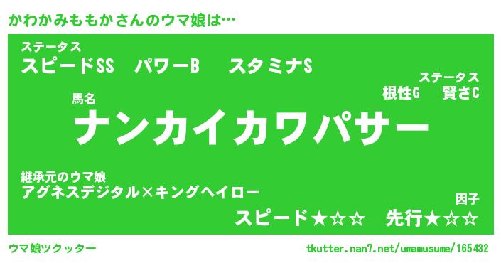 | ポケモン風あだ名 | 『カワチュウ』『カワカダネ』 |