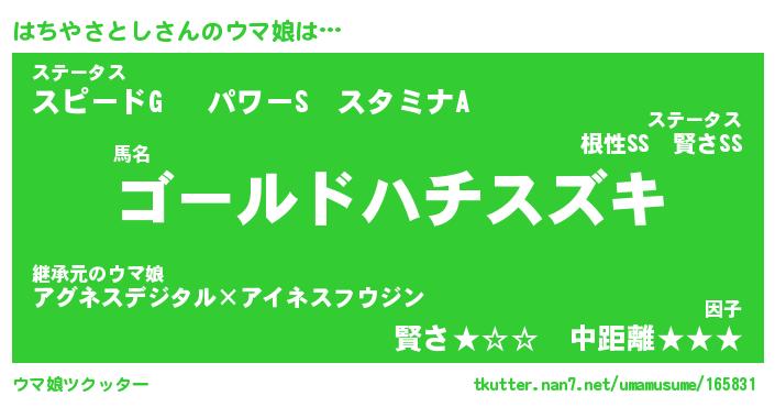 | 伝説のあだ名 | 『封印されしスナイパーはちやさとし』 |