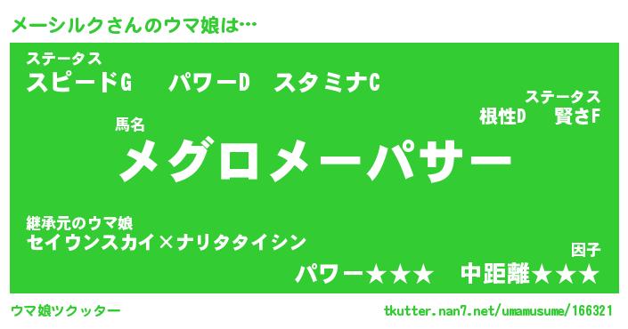 | ファンタジー風あだ名 | 『メーフェル』『エターナルメーシルクー』 |
