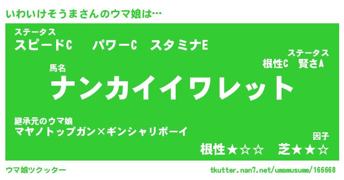 | 意味不明あだ名 | 『ペロリンいわいけそうま』 |