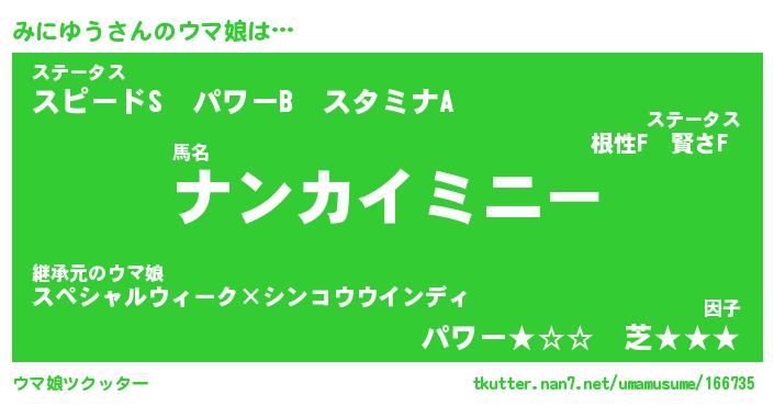 | 意味不明あだ名 | 『ペロリンみにゆう』『永久保存みにゆう』 |