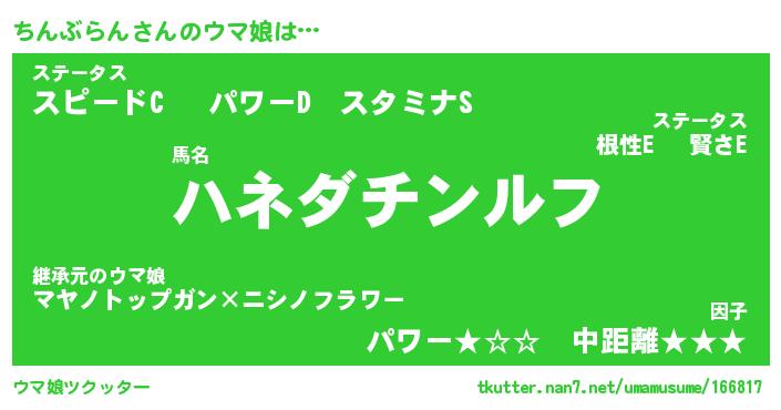 | ファンタジー風あだ名 | 『チンフェル』『エターナルチンブランー』 |