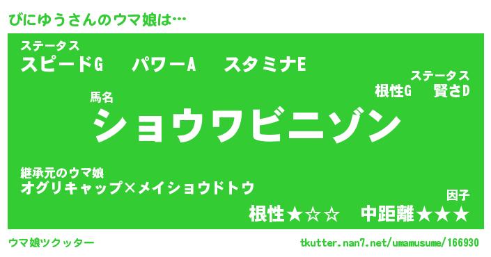 | 意味不明あだ名 | 『ペロリンびにゆう』『永久保存びにゆう』 |