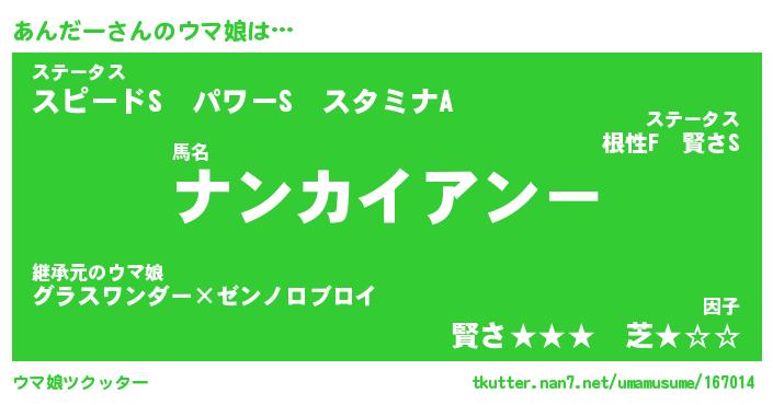 | 意味不明あだ名 | 『ペロリンあんだー』『永久保存あんだー』 |