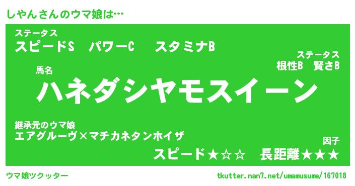 | 意味不明あだ名 | 『ペロリンしやん』『しやんフォーエバー』 |