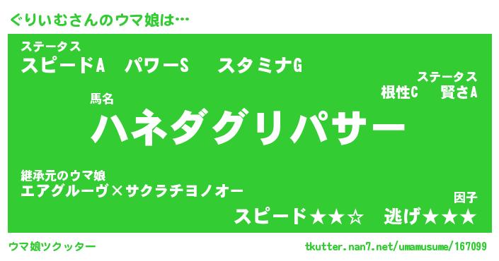 | 欧米人風あだ名 | 『マイケルぐりいむ』『ウサインぐりいむ』 |