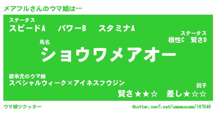 | ファンタジー風あだ名 | 『メアフェル』『エターナルメアフルー』 |