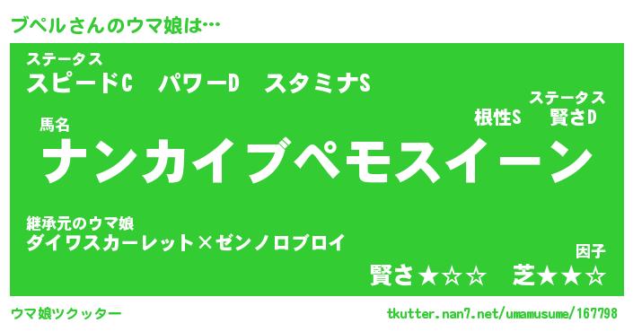 | ヘコむあだ名 | 『ブペもー』『豆乳』『ブペぷりん』 |