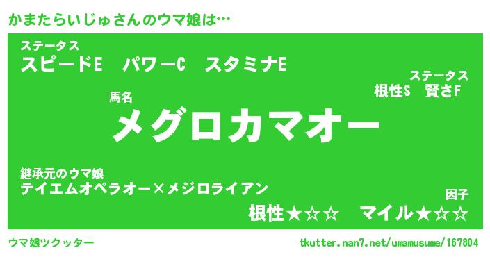 | ファンタジー風あだ名 | 『カマフェル』『ファントムカマス』 |