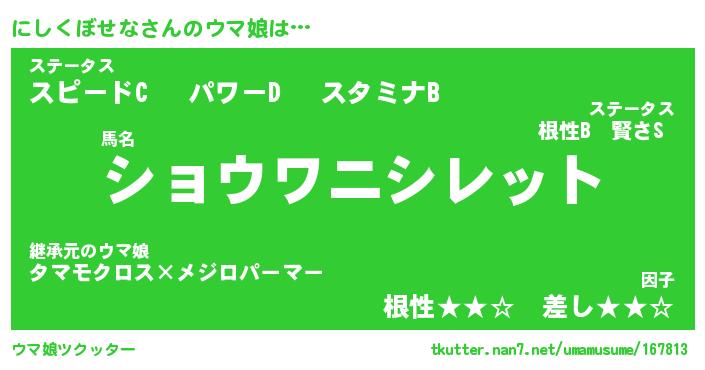 | 胡散臭い通販商品みたいなあだ名 | 『必ず成功する霊験あらたかなお札…その名も「にしくぼせな」』 |