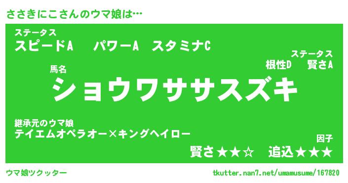 | 伝説のあだ名 | 『伝説のスナイパーささきにこ』 |