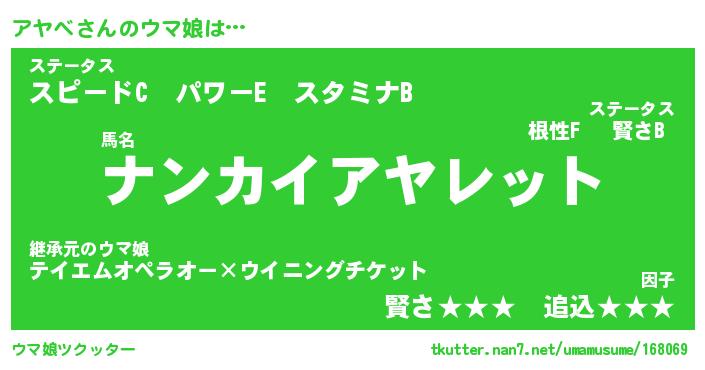 | 意味不明あだ名 | 『ペロリンアヤベ』『アヤベフォーエバー』 |