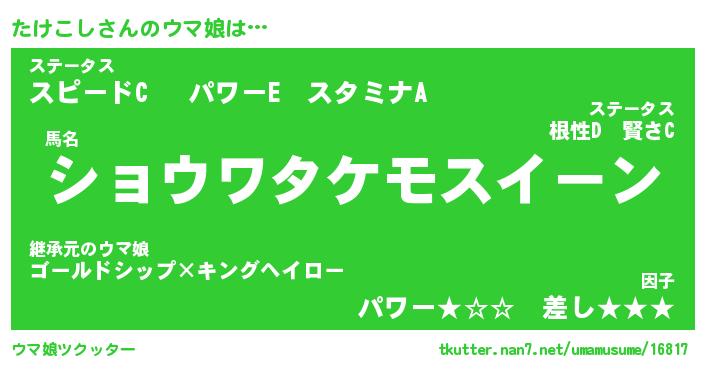 | ヘコむあだ名 | 『たけもー』『酢こんぶ』 |