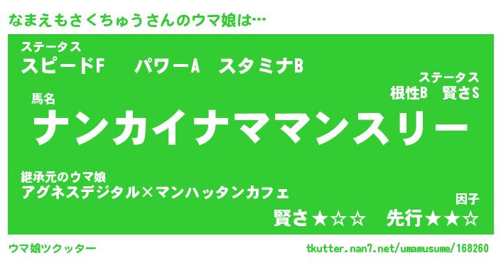 | ポケモン風あだ名 | 『ナマチュウ』『ナマエダネ』 |