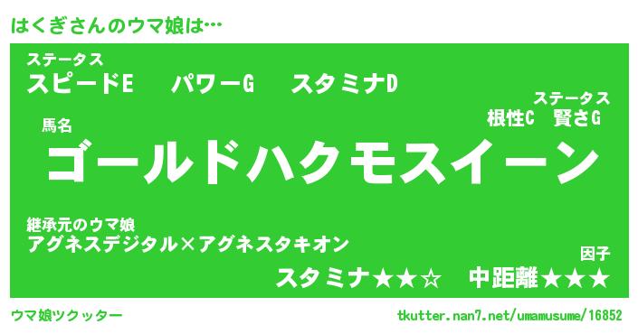| ポケモン風あだ名 | 『ハクチュウ』『ハクギダネ』 |