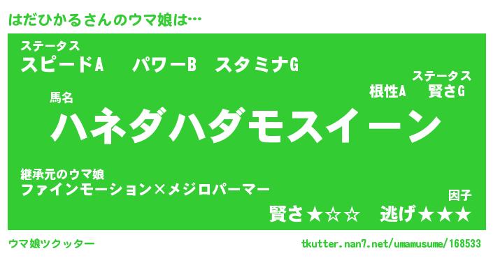 | 自動車の名前っぽいあだ名 | 『ハダティマ』『ハスラー』『ハンR』 |