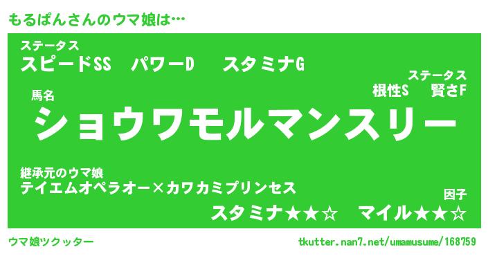 | 意味不明あだ名 | 『ペロリンもるぱん』『永久保存もるぱん』 |