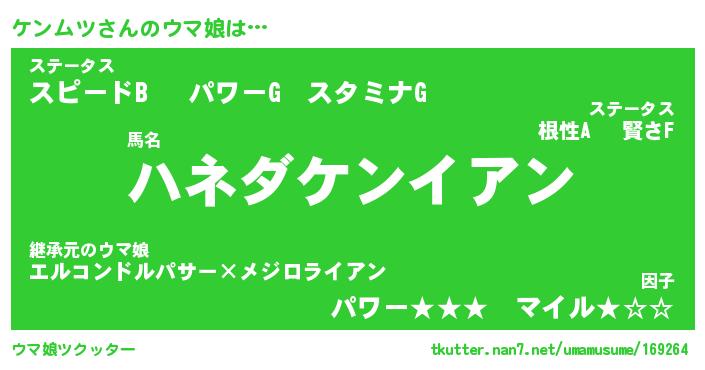 | 欧米人風あだ名 | 『マイケルケンムツ』『ウサインケンムツ』 |