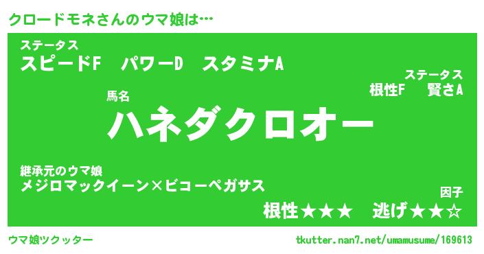 | 2回繰り返すあだ名 | 『クロクロ』『ククロロ』『けらけら』 |