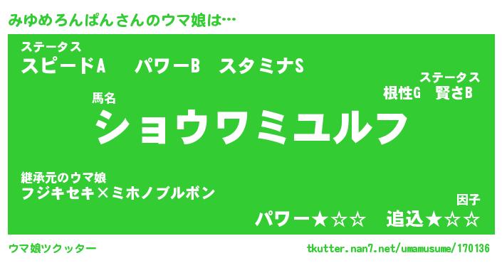 | ファンタジー風あだ名 | 『ミユフェル』『ファントムミユス』 |