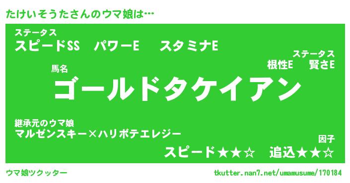 | ヒーロー風カッコイイあだ名 | 『スーパータケイソウタ』『黄金騎士タケ』 |