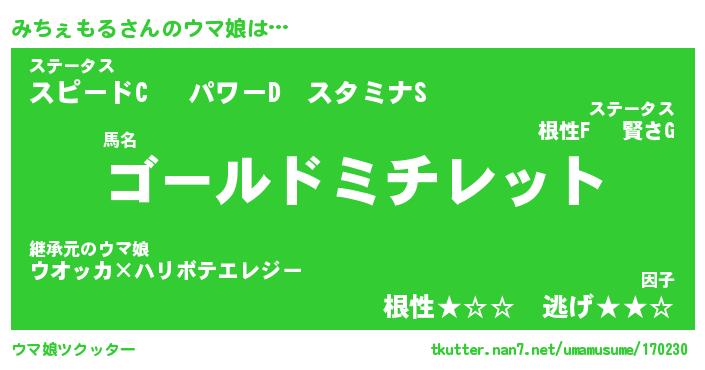 | 伝説のあだ名 | 『封印されしスナイパーみちぇもる』 |