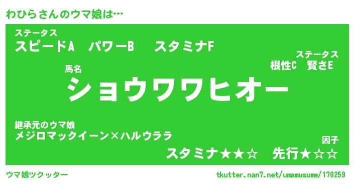 | ポケモン風あだ名 | 『ワヒチュウ』『ワヒラダネ』 |