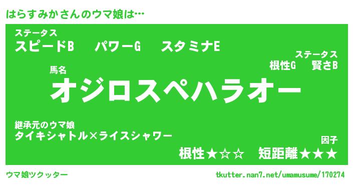 | ピコ太郎風あだ名 | 『ハコ史郎』『ピハ一郎』『ハラ四郎』 |