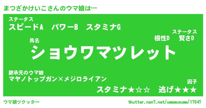| 胡散臭い通販商品みたいなあだ名 | 『必ず成功する霊験あらたかなお札…その名も「まつざかけいこ」』 |
