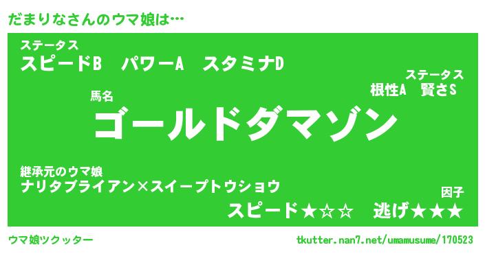 | 男性向けラノベタイトル風あだ名 | 『ダマリナアートオンライン』 |