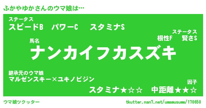 | ファンタジー風あだ名 | 『フカフェル』『エターナルフカヤユカー』 |